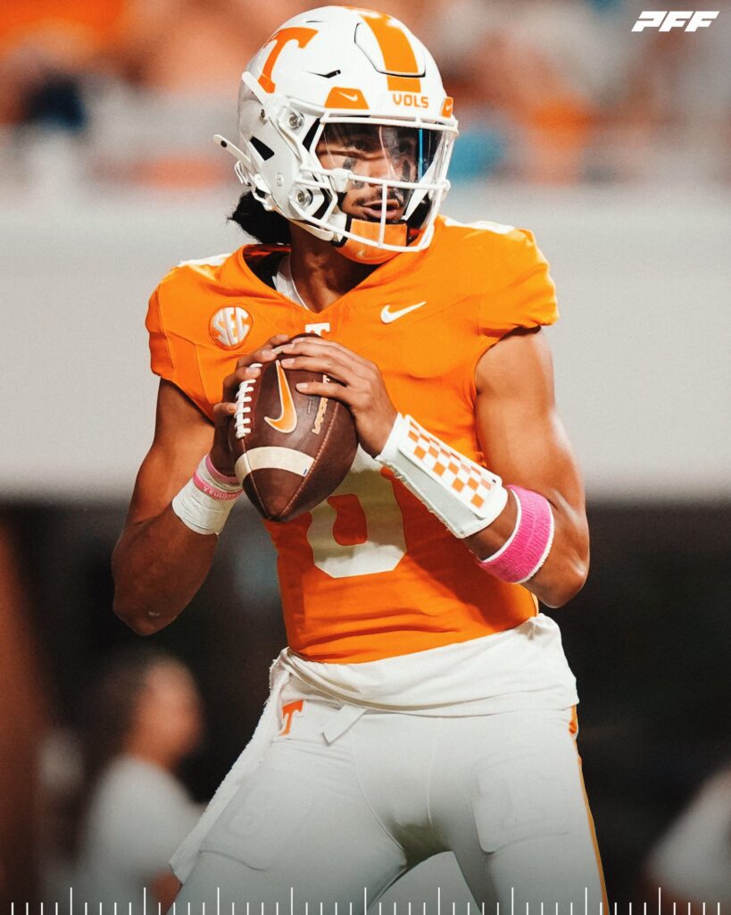 Last year’s starter for Tennessee, Nico Iamaleava entered the transfer portal leaving the spot open during spring practice. Joey Aguilar, a transfer from Appalachian State won the job over redshirt freshman Jake Merklinger.